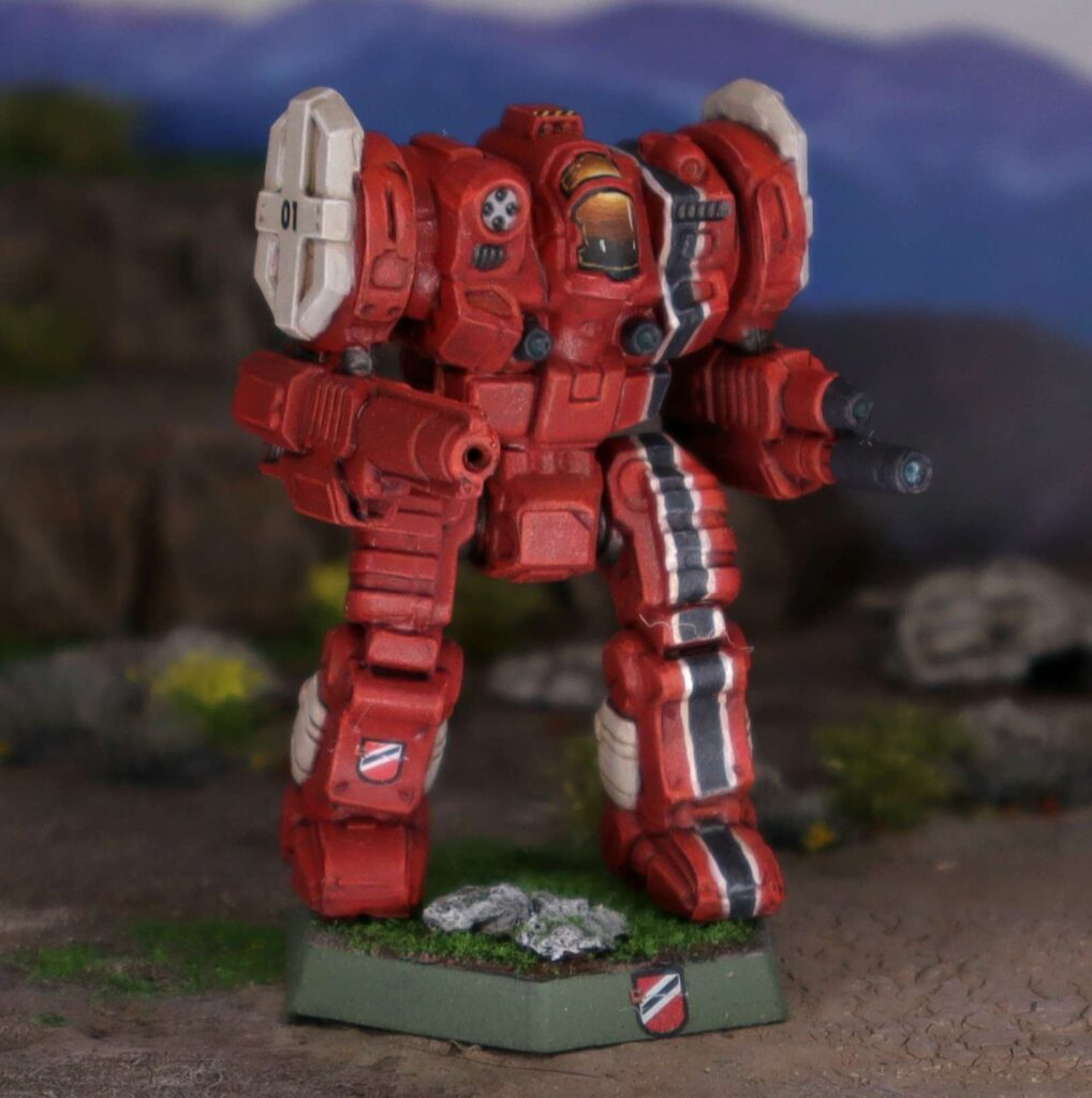 The LCG employ a red paint scheme, with a black stripe down the left torso and leg on ‘Mechs, and across the left side of vehicles and fighter craft.