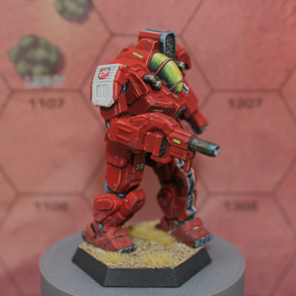 The LCG employ a red paint scheme, with a black stripe down the left torso and leg on ‘Mechs, and across the left side of vehicles and fighter craft. Insignia: The LCG’s insignia is a diagonal black stripe over white on a red shield, overlaid with a horizontal saber. The Thirty-Second Recon’s insignia is a rabbit jumping over a crater on a blasted landscape. The insignia for the 241st Battle is a crossed torch and sword on a black background with a pair of red eyes staring out from the black. The 180th Dragoon’s insignia is a war hammer set upon a rising sun. Per FM: Mercenaries Supplemental, pages 46-49.