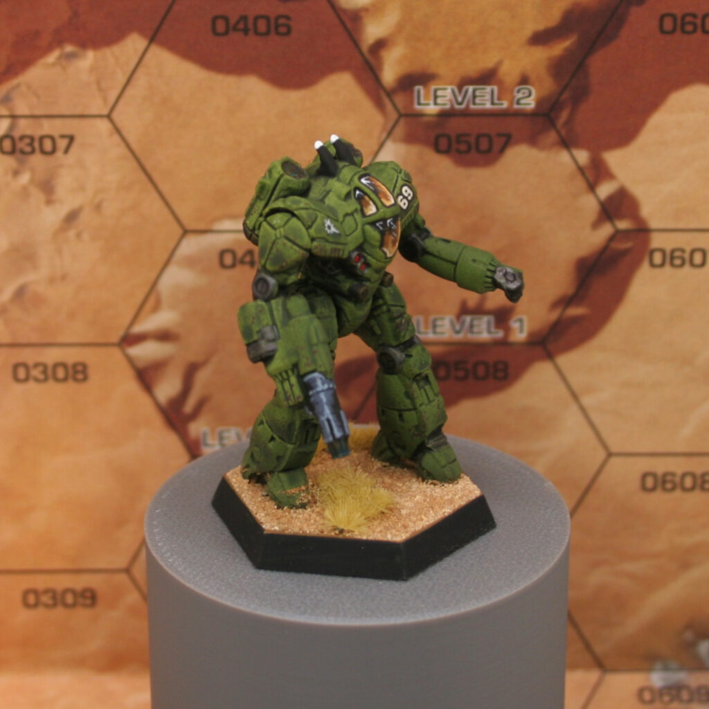 Primed black with Vallejo airbrush, zenithal grey ink (liquitex), heavy dry brush with ice yellow (Vallejo) for edge highlights. Gloss sprayed (Vallejo) then black oil washed (Winsor-Newton). Sponge off excess oil. Once dried then matte spray (Vallejo). You can paint, but airbrush works best, militarum green (citadel) contrast paint over everything. Picked out details with gunmetal (army painter) and nuln oil (citadel) over the metallics. Sponged on dark rust (Vallejo) to areas to give more depth and detail. Most important is AK Ultra Matta varnish over top to get rid of the very satin finish that contrast paint leaves behind.