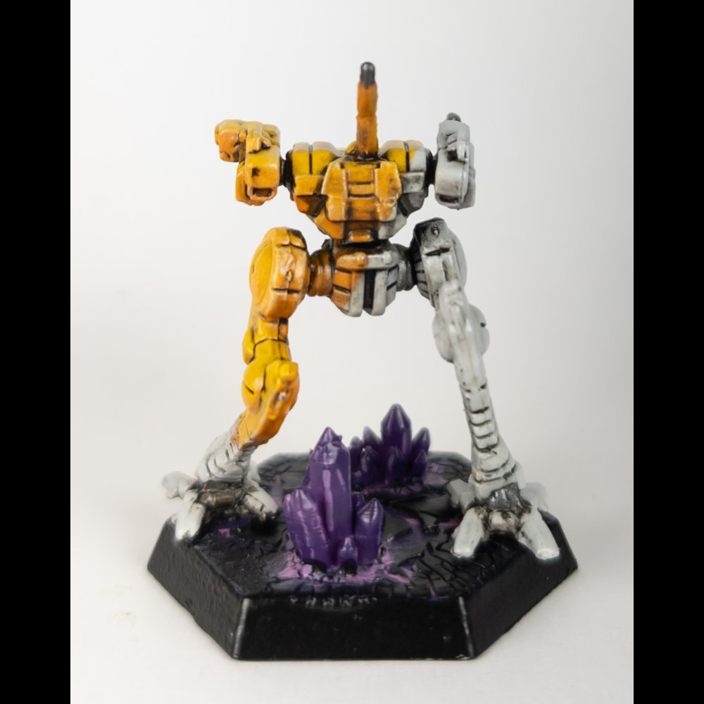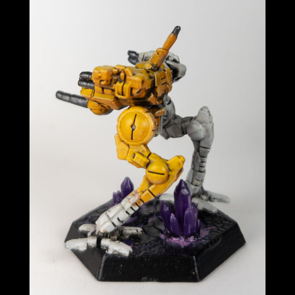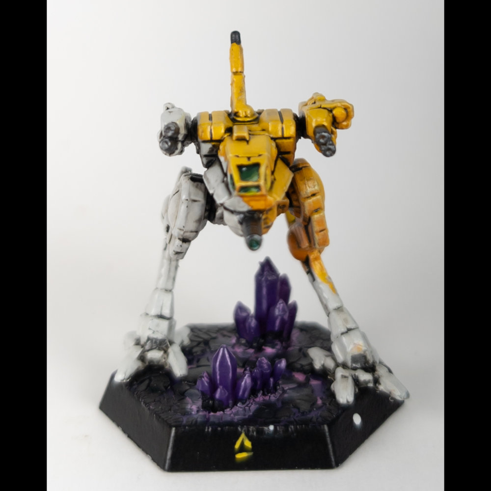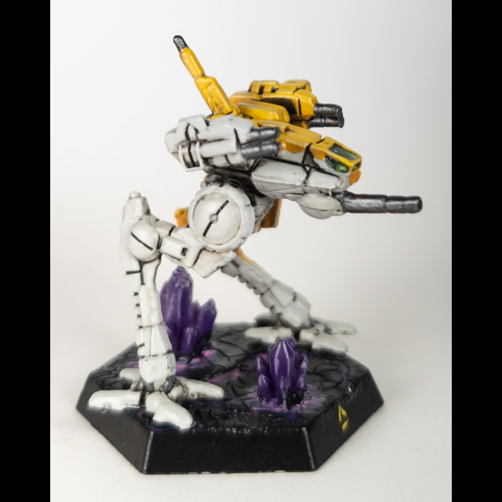 The Dawn Guards generally use a white and golden yellow scheme. The yellow is painted diagonally across the ‘Mech from the top of the right shoulder to the bottom of the left leg and the white covers the lower half of the ‘Mech. While this is the standard scheme, the regiment has also been known to paint its units in primer gray, olive drab, or other colors appropriate to the deployed environment.