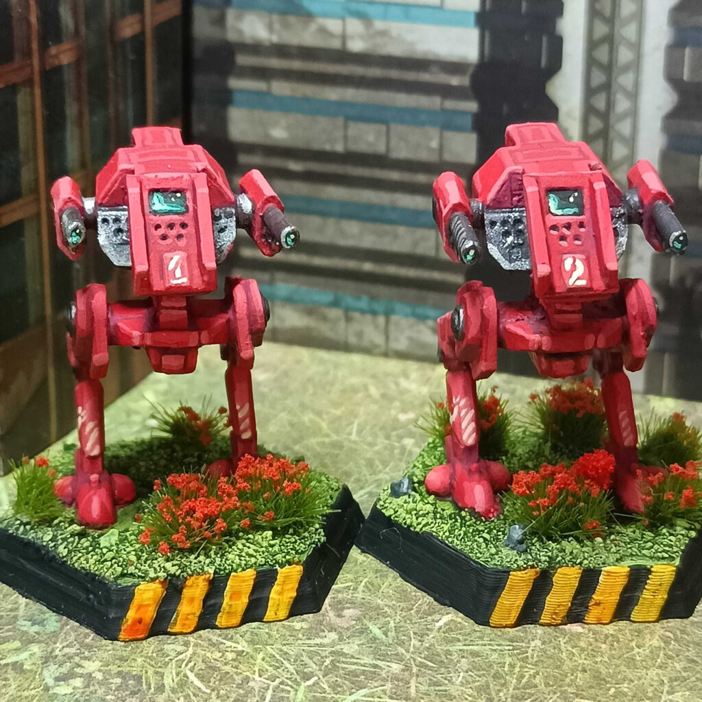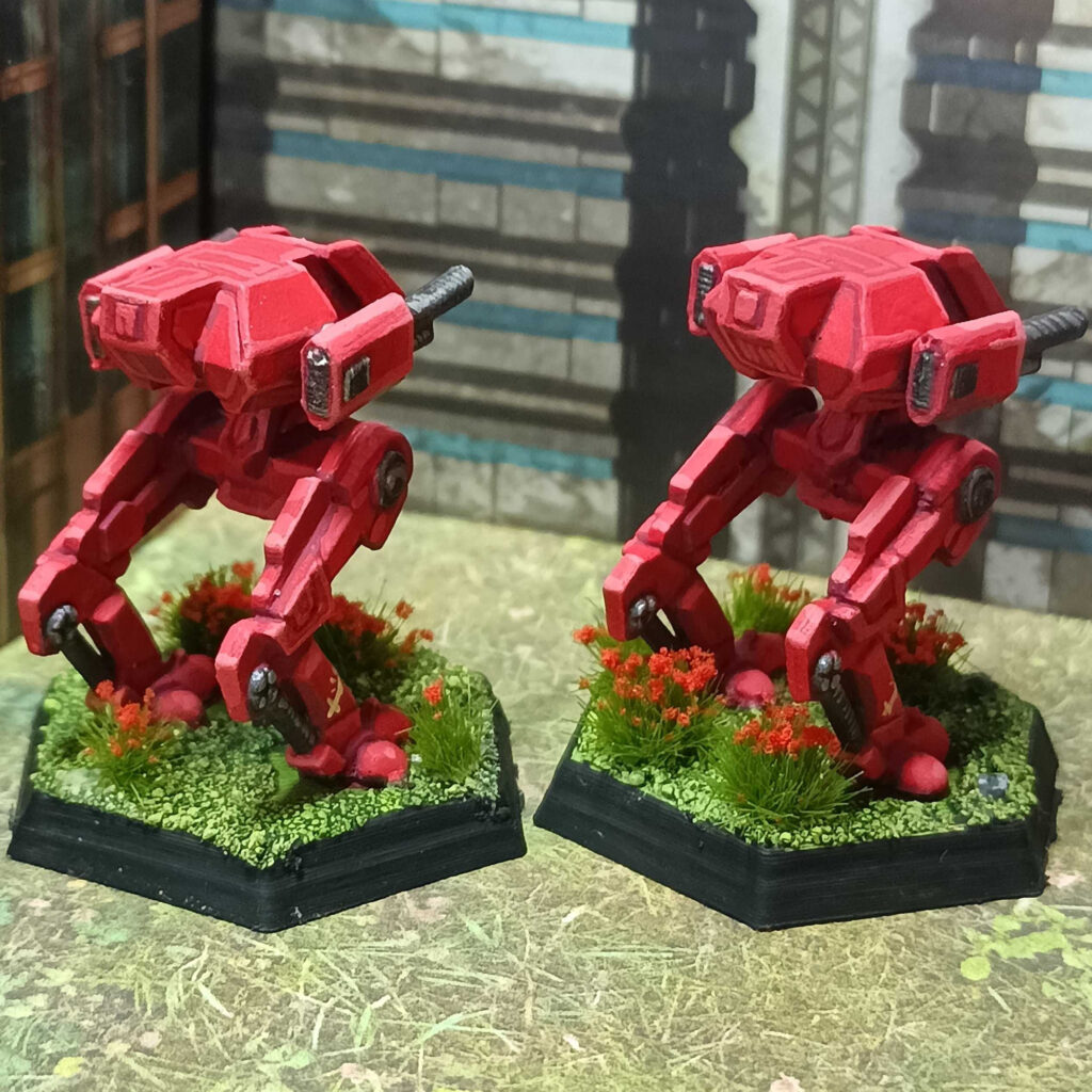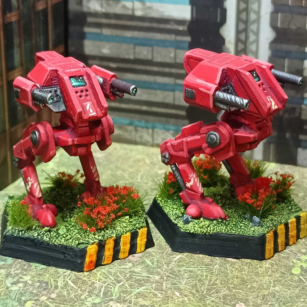 7. Highlight the Pure Red, using a mix of Pure Red and Army Painter Dorado Skin (a very bright skin color.) The first highlight should be noticeably brighter than the Pure Red without drifting too much into pink. Hit pretty much all edges with that, leaving out those that clearly face downwards. The second highlight should be almost pink and hit the top-facing corners, less is more here to make your mini not look pink. You can also hit some edges close to the cockpit with the second highlight color to put some more emphasis on the eye-catcher that is the cockpit. I also painted the holes of the lrms with Matt Black.